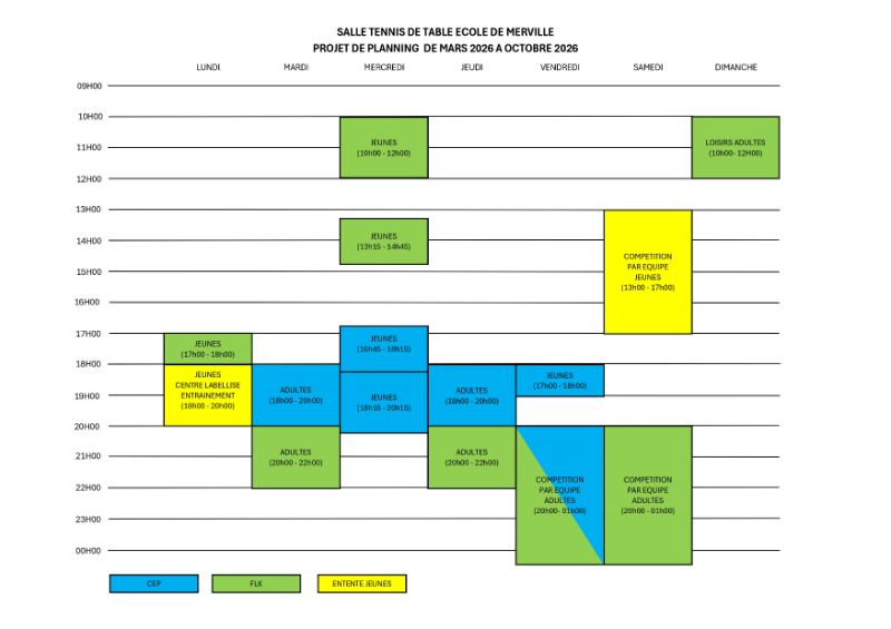 Créneaux d'entrainement